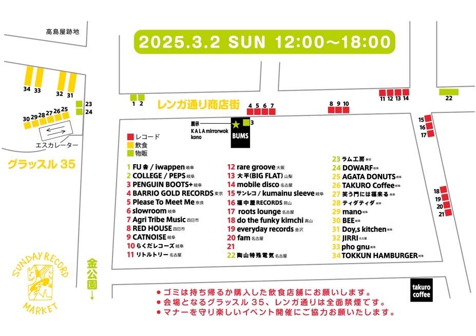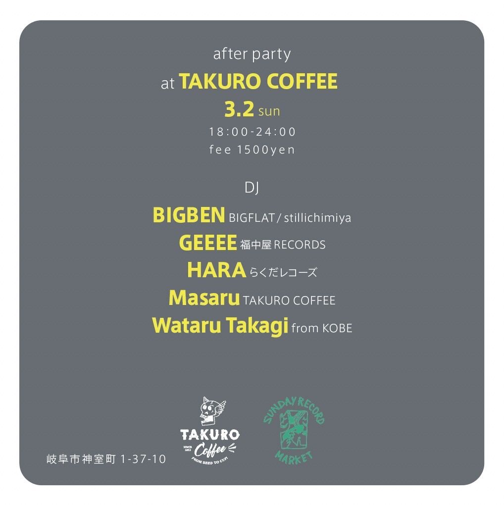 当日18:00よりTAKURO COFFEEにてレコード店主らによる