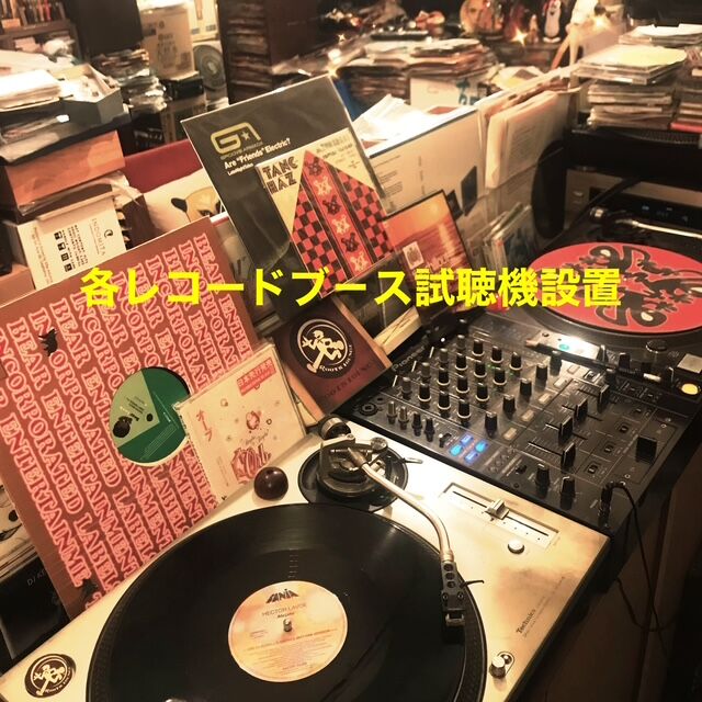 レコード販売各ブースにおいてアナログ試聴機も設置しています。